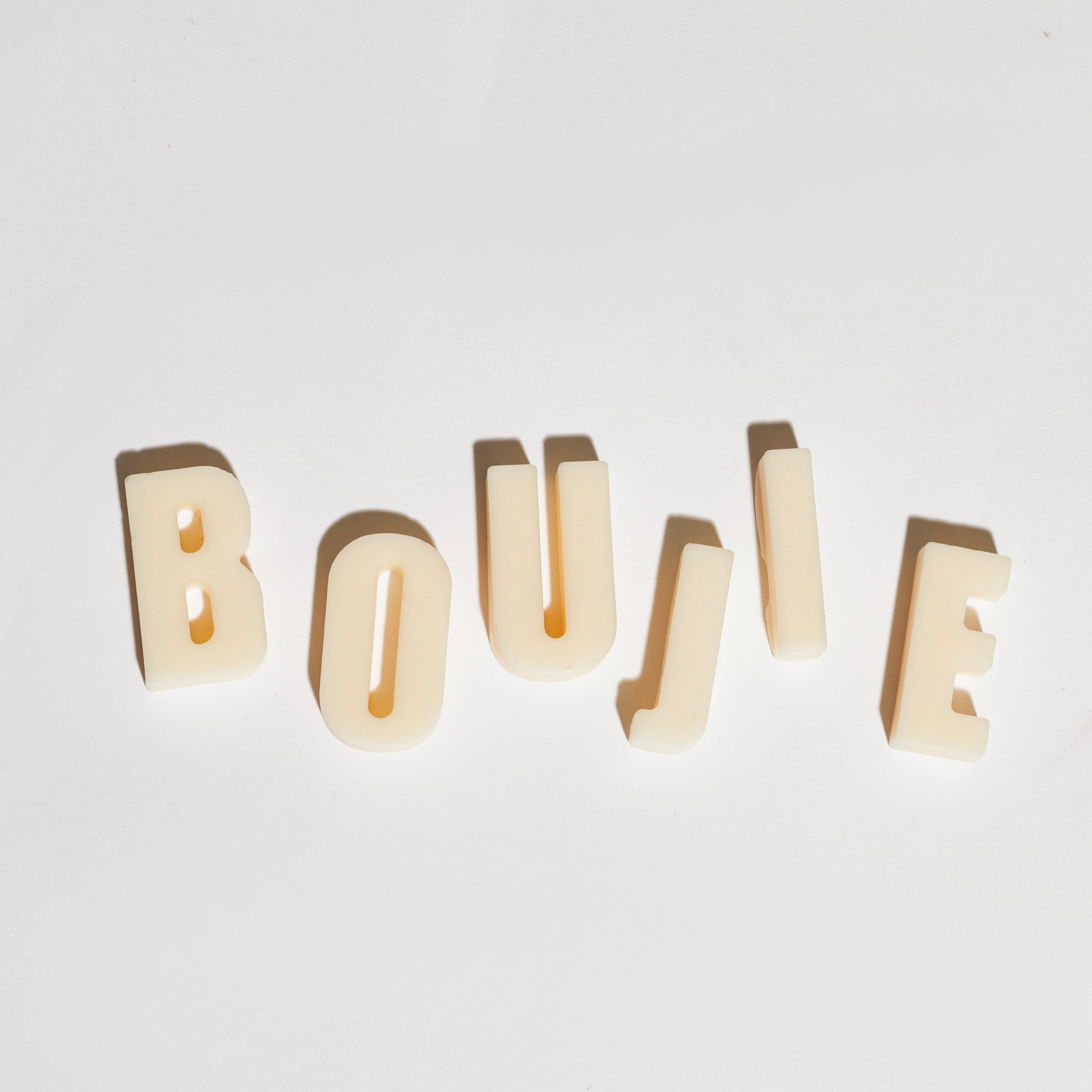 Each letter is hand-poured using 100% soy wax, and individually crafted in our Boujie Studio. The wax melts are made in our signature Classic Cream colour, suitable for any décor or celebration.